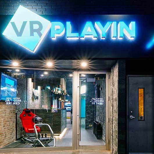 At VRPlayin you can expect a clean modern space complete with a total of 18 VR stations, party room and a driving simulator. Up to 3 people can share a station, taking turns in the headset while the others can relax at our viewing bar and watch the action on our TV screens. Customer Care Representatives will always be around to offer you tips, tricks, and how-to support throughout the duration of your session. Plus, thanks to the built-in microphones in every headset, you can constantly communicate with your other coworkers in VR to make the best of your team building activity. All of ours VR stations are 8′ x 8′, which gives you plenty of room to freely interact inside the virtual world.